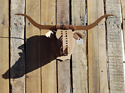 Many of you know that I love design with a bit of humor (I try very hard to not take myself or life to seriously you know) and the Texas Longhorn head was perfect for a project I am currently working on for Mr. R.! I had to have it! (Picture from Cardboard Safari site- I love the wall it is on!)
